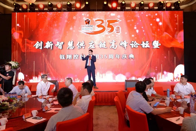 鈺翔控股集團董事長葛華在答謝辭中回顧了鈺翔控股集團35年的壯麗歷程,講述了鈺翔控股集團二次創業,緊抓國家供應鏈改革發展機遇的實踐成果,并希望與廣大上中下游合作伙伴一道打造千億級智慧供應鏈管理生態圈。葛董在最后對35年來關心和支持鈺翔控股集團的各界人士、各位合作伙伴表達了深深的感恩之情。