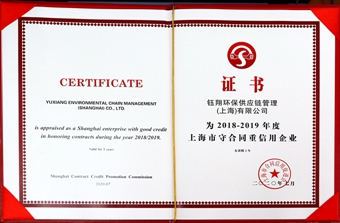 日前,鈺翔控股集團旗下鈺翔環(huán)保供應鏈管理(上海)有限公司、上海久源經(jīng)貿發(fā)展有限公司被評為“2018-2019年度上海市守合同重信用企業(yè)”,并榮獲AAA級合同信用等級認定。
