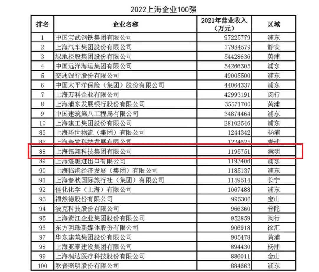 8月30日,由上海市企業(yè)聯(lián)合會、上海市企業(yè)家協(xié)會、上海市經濟團體聯(lián)合會和解放日報社聯(lián)合主辦的2022上海百強企業(yè)發(fā)布會在上海隆重舉行,會上發(fā)布了2022上海企業(yè)百強、2022上海民營企業(yè)百強等多項企業(yè)榜單。