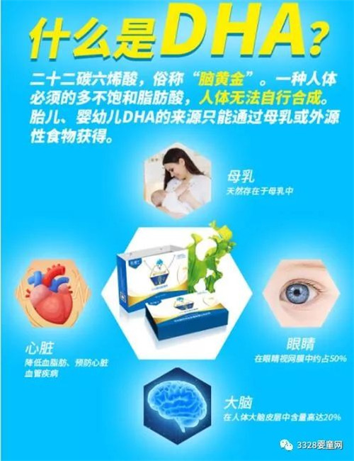 對于孩子們來說,0-6是其大腦發(fā)育的關鍵時期!這一時期,若父母能為孩子提供更均衡全面的營養(yǎng)將會使其一生受益,而這其中,“DHA”必不可少!為什么這么說呢?因為DHA俗稱“腦黃金”,是讓孩子大腦“聰明”起來的第一重要營養(yǎng)素,可促進寶寶大腦發(fā)育,增強記憶與思維能力、提高智力!