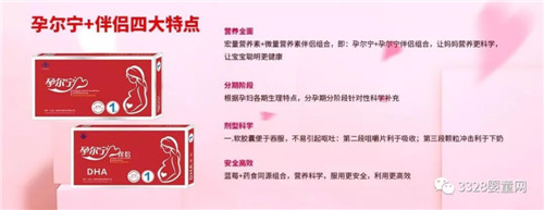 孕爾寧+孕爾寧伴侶組合:根據孕婦各期生理特點,分孕期分階段針對性科學補充,咀嚼片利于吸收.