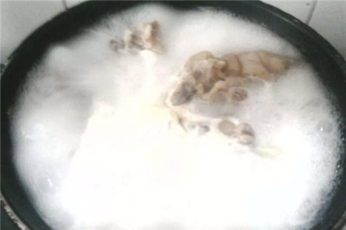 鍋置火上,加入適量清水,旺火煮沸;放入1000克洗凈的豬蹄;鍋加蓋,改用文火將豬蹄燉爛;加入250克羊奶、30克精鹽,煮沸后即可食用。
